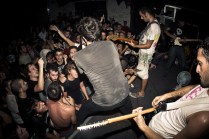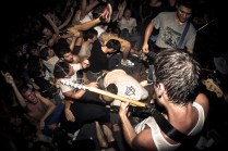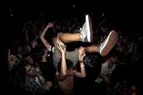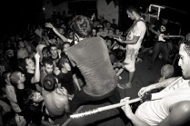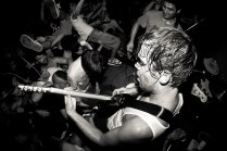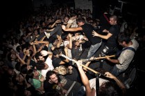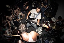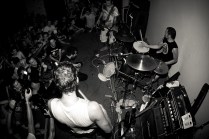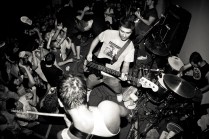 Il sottoscritto più Layne, Gera, Peciu e Jonny. Le spese divise perché c’ è crisi. Il sudore condiviso perché ce n’ è bisogno. A Bologna fa caldo, almeno 30 gradi. Arriviamo nel primo pomeriggio, giro semituristico e qualche birra per raffreddare. L’ XM è un posto estraneo all’ Italia, pienamente anarchico e volontariamente autogestito. Si sta bene. Il merch dei gruppi riempie i vuoti di un cemento malvestito. Due piccole stanze ospitano i concerti. Lì dentro il caldo e l’ umidità aumentano. Ho le dita consumate, come quando sto troppo tempo in acqua. Come quando le ragioni non le senti, senti solo il desiderio, di stare lì, con i piedi sul palco e con le mani sui tasti della macchina fotografica. Non ho vissuto gli anni dei Kina, nonostante sia di Aosta, ma ho le immagini di quei concerti fisse in testa, l’ odore della carta dei libri di Glen Friedman sui polpastrelli. Quella sera ci sono finito dentro. Dentro a quei libri e a quelle immagini. SUDORE POGO E GRATITUDINE. Ma anche lealtà e spirito. Rabbia, ideali. E soprattutto PASSIONE. La respiravo, la respiravamo. Tra una foto e l’ altra mi fermavo ad osservare le smorfie di dolore, di piacere, gli sguardi degli uni e degli altri. Il cuore quella sera ha fatto gli straordinari, invisibile agli occhi ma presente sulle facce. Le facce di tutti, di chi ha voglia di creare e condividere, di chi ci crede, di chi si è fatto migliaia o solo centinaia di chilometri per essere lì, ancora una volta, felice di aver condiviso qualcosa di speciale e irripetibile.