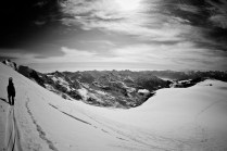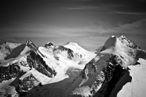 Sinceramente non so perchè ho aspettato così tanto a pubblicare queste foto, forse per colpa di vane speranze di pubblicazione, su carta s’intende, o semplicemente per pigrizia. Il Breithorn è svizzero, è un 4.000 facile che dà accesso ad una serie di panorami incredibili, massiccio del Rosa per primo, Monte Bianco, Weisshorn, Grand Combin, quel giorno anche il Monviso si è fatto ammirare. Le suddette foto sono all’interno del post mentre a dar il benvenuto ai vostri occhi c’è quella nord tanto imponente, spaventosa, dritta tanto che quasi la neve fatica ad attaccarsi, a tratti scalfita da lunghi canali in diagonale che sembrano ferirla, quella nord che lui conquistò per primo da solo, d’inverno. Difficile non provare qualcosa osservandola.