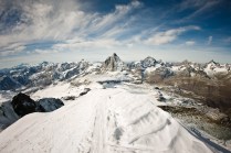 Ottobre 2011, Fabien tra la Dent d’Herens e il Cervino, cima del Breithorn occidentale, 4.165.