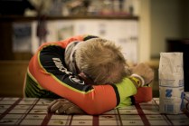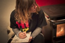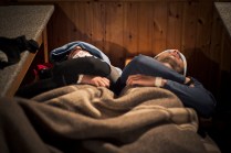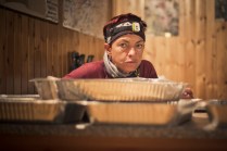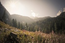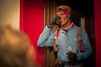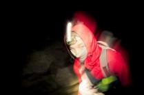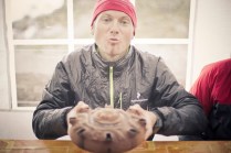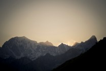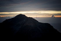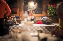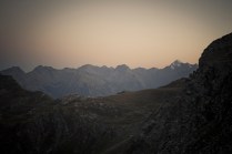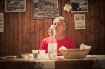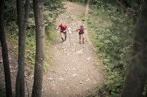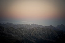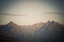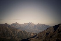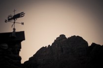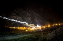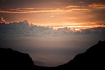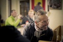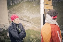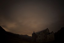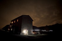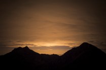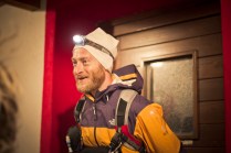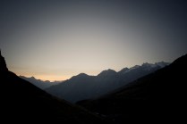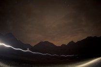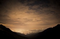Andrea arriva a Donnas appena dopo le 20.30, lo aspetto in macchina con un litro di caffè e la radio accesa: Of Monsters And Men, Little Talks. Partiamo direzione Rifugio Coda. Per la prima volta in vita mia percorro la strada per Lillianes, finito l’asfalto continuiamo per la poderale fino al segnavia per il rifugio. Parcheggiamo e vediamo una bella serie di frontali salire il pendio, incontriamo Sabina, atleta di Como, saliamo con lei fino al colle, il terreno è umido, non piove ancora. Arrivati al colle il vento si fà vivo, in 15 minuti siamo al rifugio. Sono le 23.45. Entriamo. Vediamo la stanchezza consumare gli atleti, i 54 posti letto accolgono i concorrenti, turni di 2 ore di sonno, si cerca di accontentare tutti. Vediamo disponibilità e gentilezza. Ci sediamo. Birretta, minestrone, birretta, zuccherini sotto spirito, Genepy. Ci stiamo ambientando. Esco a fare qualche foto, vento sempre presente, frontali anche. Rientro. Intanto facciamo amicizia con chiunque si sieda al nostro tavolo. Incontriamo Julia, ragazza lettone con una caviglia demolita. Piange perchè non può proseguire, non sente ragione, alla fine decide di fermarsi a dormire e provare a ripartire la mattina dopo. Il cuore ha sempre l’ultima parola. Le ore passano, riusciamo anche a dormire un pò. Ci svegliamo all’alba. Guardiamo ad est, ancora una volta mi stupisco. Caffè, saluti, ringraziamenti e si torna giù. Adesso siamo alla base vita di Gressoney, il meteo non è dei migliori. Pranzo veloce e poi Alpenzù.