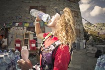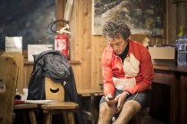 Sono le 21.00 e sto scrivendo dalla base vita di Valgrisenche. La connessione stenta ma se leggete queste righe vuol dire che tutto è andato per il meglio. Con un piatto di pasta e una birretta poi si scrive anche meglio. Stamattina dopo la partenza sono scappato al rifugio Deffeyes, 1.50 di salita ed ero lì, davanti al Rutor, davanti alla pasta e alla birretta, la prima della giornata, e con il cavetto usb bruciato, ovvero nessuna possibilità di scaricare le foto. Per fortuna il gestore del rifugio mi ha prestato il suo, thanks man! Verso le 14.30 decido di scendere e andare incontro ai concorrenti, sorrisi, ancora una volta, qualcuno dice che è perché è il primo giorno, io dico che in foto sono più belli. Incontro Francesca (Canepa), sta bene e vi saluta. E sorride. Nella discesa riconosco una paio di amici e poi Marco e Luca che accompagnano Augusto (Rollandin) verso il rifugio. Arrivo a La Joux alle 16.30, chiamo la mia amica Mary che mi rifornisce di zuccheri e soprattutto di un cavetto nuovo, grazie! Ora Valgrisa, mi accompagna un altro amico, Andrea, curioso di vedere da vicino cosa succede sulle Alte Vie. Stupore per lui. Ora è tempo di foto e alle 03.15 si parte per Cogne… See you there!