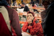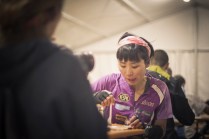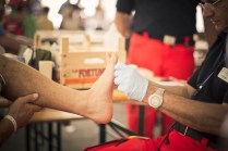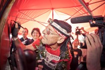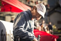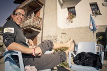 Il Tor des Geants è reale, non c’è dubbio, ma quante “realtà” conoscete che portano in grembo il SOGNO? Il sogno, per la maggior parte dei partecipanti, è di farli tutti quei 330 km. E allora se davvero è come dice Walter, questi uomini sono più vicini alla salvezza, perchè il loro sogno è durato 3, 4, 5, 6 giorni. Quest’anno chi ha sognato più a lungo è stato Francis De Stefani, 66 anni. Ha sognato per 144 ore, 29 minuti e 43 secondi. Vederlo all’arrivo è stato emozionante. Gli scattai una foto pochi minuti prima della partenza ed ora eccolo lì, stanco, dolorante ma festeggiato da tutti, come se anche loro sapessero che è lui il più fortunato. Beati sogni. L’anno scorso tornando dall’Eroica scrissi un post sulla RICCHEZZA. Tornai da quell’esperienza arricchito, nello spirito. Dopo questi sei giorni la sensazione è la stessa. Ora non posso più nasconderlo, la partenza è stata vissuta da me con un pò di nervosismo, credo naturale, dovuto al fatto che non sapevo cosa mi aspettava. Ora lo so: una botta di vita, OSSIGENO. E’ stata una settimana intensa, ricca, mai scontata, felice. Questi sei giorni mi hanno dato tanto, a livello umano prima di tutto, fotografico di conseguenza. Heart and truth, ovvero cuore e verità, sono anni che lo porto sulla pelle, quella macchina fotografica stilizzata, tra le due scritte, mai come in questi giorni quel tatuaggio è stato così VERO. Mentre scrivo ho gli occhi pieni di BELLEZZA. Gli atleti, i volontari, il pubblico, i rifugi, le basi vita, le albe, i tramonti, i posti nuovi e lo stupore di fronte a tanta meraviglia, la luce del tardo pomeriggio, autunnale, calda, la stanchezza, le frontali viste da lontano che come lucciole risalgono il pendio, prendono freddo, sorridono. Le lacrime. Il freddo. Le cazzate dette con gli amici e con gli atleti, atleti amici. Le birrette bevute alle basi vita, con l’immancabile pasta, i chilometri fatti in macchina, la compagnia degli amici, i post apprezzati, le foto commentate e i messaggi ricevuti. GRAZIE.