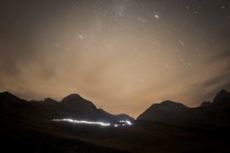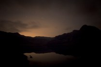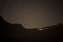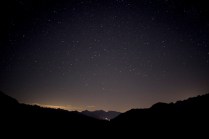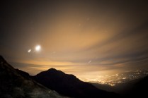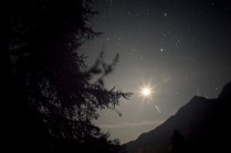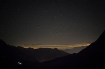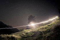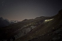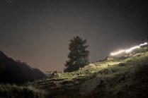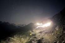 Dov’eravamo rimasti? Ah si, il sonno. Il mio sonno ieri notte è durato il tempo che Andrea ha guidato la mia Kia superaccessoriataetutto (in mio possesso esclusivamente per il Tor) da Valgrisenche a Villeneuve. 20 minuti. Dopodichè l’ho salutato e con un litro di lacrime artificiale negli occhi mi sono diretto a Cogne. Sono partito per il Sella alle 02.50 del mattino, da Valnontey. Non so se vi è mai capitato di camminare in montagna di notte, con un faro in testa e il buio in diretta. E’ un’esperienza completa nella quale la luna e le stelle possono renderci veramente invisibili. Dopo un’ ora di cammino sonno e fatica si sono presentati, avevo incontrato solo due atleti in quell’arco di tempo. Erano quasi le 04.00, ho trovato un piccolo pianetto sotto un albero e mi sono sdraiato ad osservare quella cosa che ancora non sappiamo quanto sia grande; non faceva particolarmente freddo, credo di esser stato lì un 40 minuti, ho scattato qualche foto e poi ho ripreso il cammino. Nel frattempo altri atleti sulla mia strada, Francesca era lì, che per poco nemmeno la riconoscevo. Sono arrivato al Sella con calma, accolto da una decina di persone. Un bicchiere di thè caldo e una breve dormita. Ormai era giorno. L’idea di raggiungere il Col du Loson purtroppo se n’è andata, tempi lunghi e stasera devo essere a Champorcher. Scendo a valle. In questo momento sono alla base vita di Cogne, solita birretta e pastasciutta per me. Tra un boccone e l’altro leggo sms e tanti commenti positivi su Facebook, grazie AMICI, grazie del supporto e grazie delle belle parole!