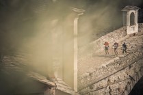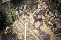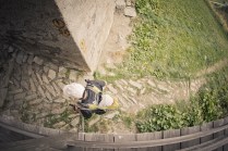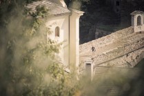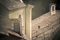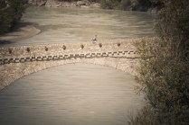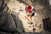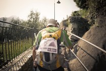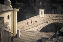 Hône, Donnas e Pont Saint Martin fanno parte di quei posti di cui conosci l’esistenza ma raramente ti capita di andarci. Oggi invece ho deciso di andarci, di “usare” quei borghi come parte di un Tor che non è solo dislivelli e montagna. E’ anche strade, ponti, scale, costruzioni. E’ la bellezza decadente di quei borghi quasi volontariamenti lasciati a sè stessi, il legno delle finestre, le vecchie insegne dipinte sui muri, i vasi di fiori, il silenzio. Decadenti si, ma affascinanti. Stamattina li ho incontrati lì, Les Geants. Alla base vita di Donnas aspettano ancora 80 concorrenti circa. Io aspetto Andrea, e poi Rifugio Coda.