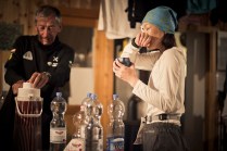 Ieri parlavo degli amici e manco a farlo apposta appena prima di partire da Cogne per raggiungere Champorcher mi chiama Mary, cara amica di La Thuile, ha appena passato l’ultimo esame all’università e ha la sera libera. Decide di venire con me. La recupero ad Aosta e insieme saliamo verso il rifugio Miserin. Nel frattempo mi sento con Fabien, Champorcherin doc e amico dei gestori del rifugio Miserin, sale anche lui. Arriviamo al rifugio che è tramonto inoltrato, gli amici di Fabien sono comodi già da un pò e mentre il riso si cuoce ne approfittiamo per qualche brindisi di compagnia. Il Miserin non è un ristoro del Tor ma è in un posto magico, affacciato sul lago e protetto dalle montagne. Capita che parecchi concorrenti vedendo le luci accese ne approfittino per un pò di caldo, li si accoglie felici, col bicchiere in mano. Capita che qualcuno brindi con noi, vino, birra e Genepy. Capita che “la gara” è anche questa, riuscire a star bene, improvvisamente, a 2.600 metri. Capita che certe volte non serve conoscersi da anni per essere amici. Capita che è bello vederli “a casa” per qualche minuto, dimenticarsi quasi che non sono neanche a metà gara. Nella notte qualcuno si ferma a dormire. Le frontali continuano a vedersi. E’ mattina ormai, mucche e galline ci svegliano, creando qualche “disagio” alla staccionata del rifugio. Salutiamo gli amici del rifugio (grazie di cuore) e scendiamo a valle, Mary torna a La Thuile, io ora sono a Hône, caffè e toast da Ale, tra poco riparto. Donnas, Pont-Saint Martin e Perloz le prossime tappe.