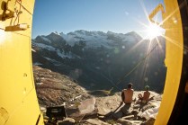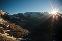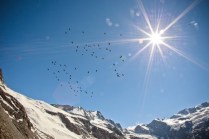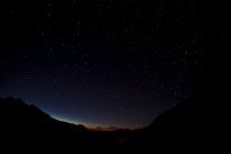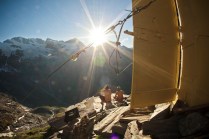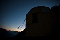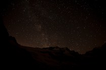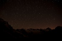 BLOT8011Sono stato al bivacco Money settimana scorsa, insieme a Fabien, Monta e l’essenziale per andare a letto con la pancia piena e la testa sgombra dall’inutile. Lamiera gialla e otto posti letto, il minimo indispensabile che lassù potrebbe apparire addirittura superfluo in serate così, dove la voglia di sdraiarsi tra gli elementi col naso all’insù è tanta, presente a tal punto da provare ad unire tutti quei puntini luminosi che messi così vicini si fanno grandi e infiniti e fanno noi piccoli e inevitabilmente finiti. Siamo stati accolti dai gracchi e verso sera famiglie di stambecchi ci hanno sfiorato, rendendoci partecipi della loro discesa verso acqua e cibo. Passare la notte in montagna mi rigenera, niente connessioni tecnologiche, la dimensione è finalmente quella giusta, l’happy hour vale sempre e il biglietto non si paga. Sto seriamente bene lassù, estate o inverno poco importa. Amici, amore e ammirazione.