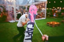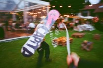 Quel giorno per festeggiarli scesero in dieci dalle lontane valli del nord ovest, viaggiarono su una carrozza d’argento e di stoffe. Arrivarono puntuali alla cerimonia nella piazza del villaggio, accompagnati da sana goliardia e qualche goccia di pioggia. Il matrimonio ebbe inizio. Nel frattempo nel campo verde tutto era pronto per la grande festa e quando i due arrivarono i valligiani diedero i loro doni ad entrambi gli sposi i quali ricambiarono con parte della loro arte e offriron loro del vivace nettare di Bacco! Quanta gioia! I lontani ospiti si tolsero le bianche bluse e la festa ebbe inizio. Balli, danze e allegria invasero quella piccola porzione di villaggio e accompagnarono la briosa ciurma fino a tarda notte, fino a che le gambe li ressero in piedi e le bottiglie furono svuotate! Tanti auguri Giorgia e Davide.